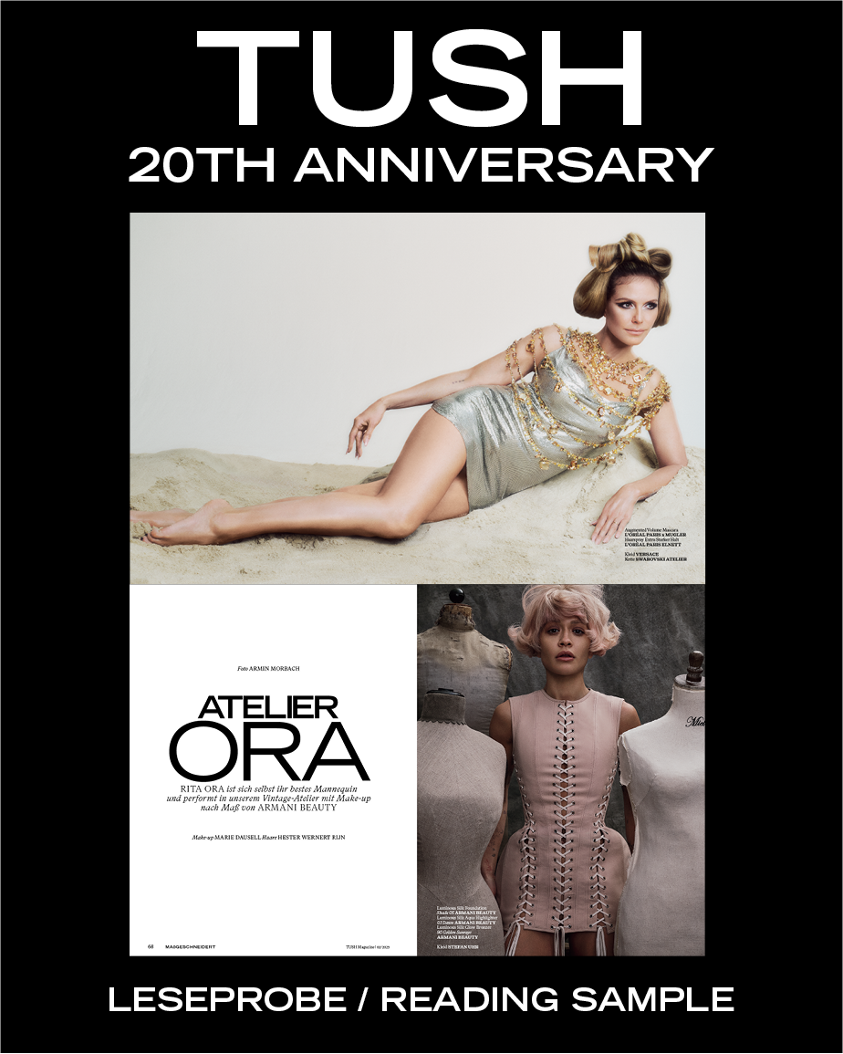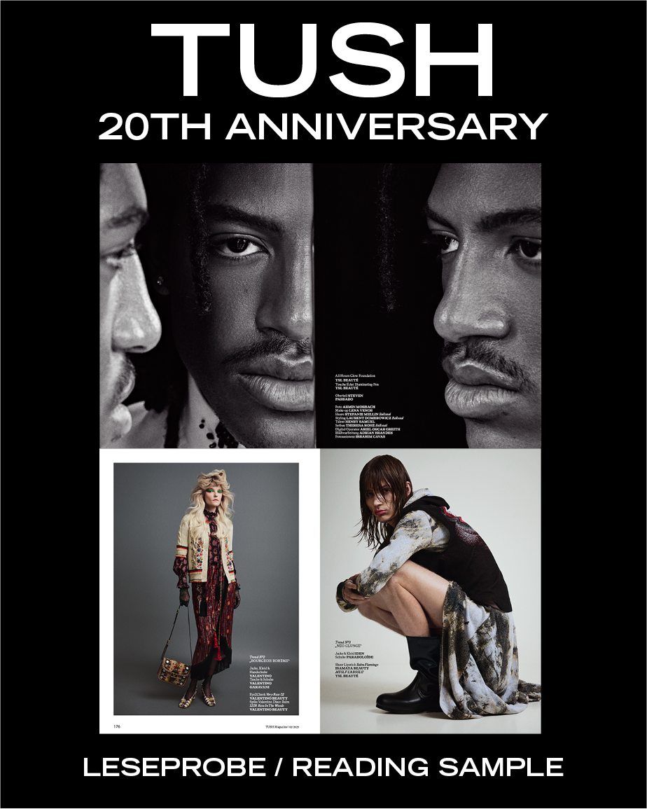 The show not only has to go on, it has to constantly reinvent itself. Each issue of TUSH is a new stage for talents from all areas of the fine arts, and every piece of content represents a specific moment in time. Over the past twenty years, TUSH has become a chronicle of beauty, capturing trends and topics in print culture.